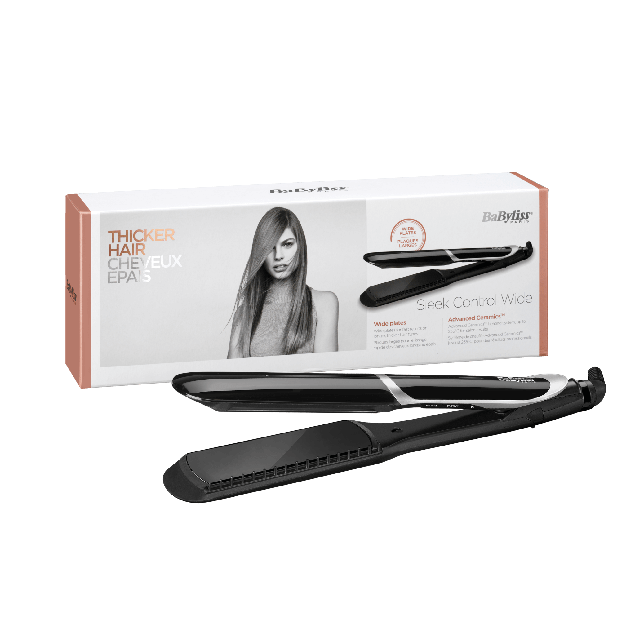 | פלטות ארוכות במיוחד | כיבוי אוטומטי | כבל 2.5 מ’ |  משטח הנחה | מסרקות נשלפות ליישור השיער.